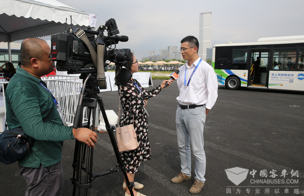 苏州金龙副总工程师李春接受记者采访