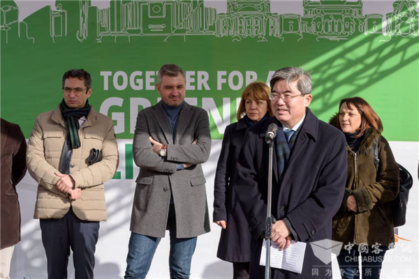 中国驻保加利亚大使张海舟在启用仪式上表示:“很高兴能够见证中国郑州宇通的20台纯电动客车在索菲亚上路运营,这不仅能够提升索菲亚市民的公共交通出行品质,而且还将为保加利亚市民带来零排放的全新出行体验,为索菲亚创造良好的空气环境贡献力量,希望宇通能够和保加利亚展开进一步的深度合作。”