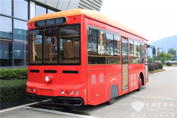 安吉人民把这100辆银隆新能源铛铛车昵称为“红铛铛”,外观酷似老北京有轨电车,车身采用大红色,行驶时噪声低、零排放。