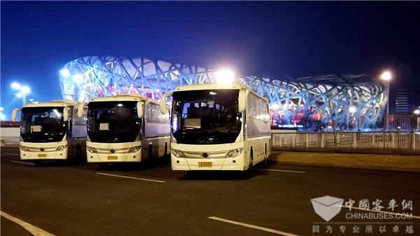 场外,由福田欧辉BJ6117纯电动、BJ6129所组建的绿色高品质“车队”严阵以待,为来自20个国家的驻华使节、首都各行业代表等五千多名中外游客担起保驾护航重任,共同欢庆新年的到来。