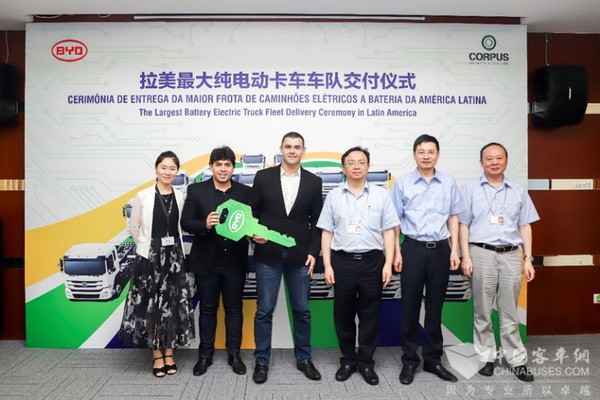 2018年5月,比亚迪宣布与巴西废弃物品管理公司Corpus Saneamento e ObrasLtda签署200台纯电动卡车订单,并首批交付20辆。这是迄今为止拉美地区最大的纯电动卡车订单,也是比亚迪在海外市场斩获的最大卡车订单。