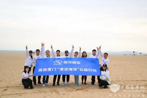 金龙客车“清洁海洋”公益小分队用可分解垃圾袋清洁海滩