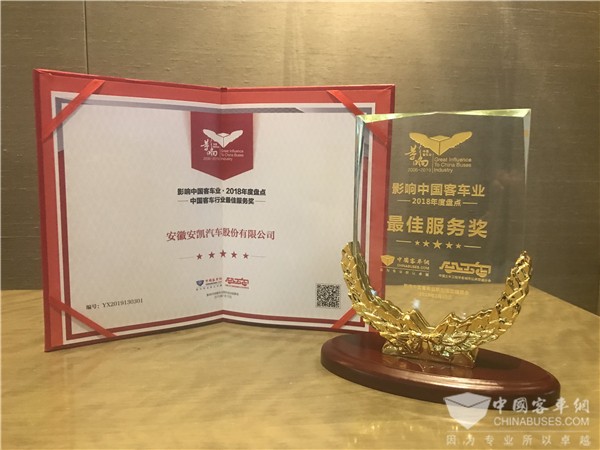 2018年1月12日,"第13届影响中国客车业系列活动"在北京隆重举行,活动由乐竞官方网站和中国土木工程学会城市公共交通分会联合主办。活动当晚,“第13届影响中国客车业年度盘点活动”评选结果正式揭晓,安凯客车一举斩获2018年“客车行业最佳服务”、“高端商务客车之星”、“城市观光客车之星 ”三项重量级大奖,以实力参与,并以见证为荣,为奋进的2018年再添新彩。