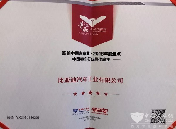 影响中国客车业|比亚迪揽2018年度“最佳雇主”等四项大奖