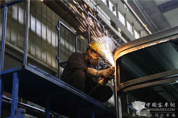 海格客车生产车间内,一排排机器人整齐划一地有序作业,新年第一天上班的员工们脸上洋溢着自信的笑容,正忙碌地工作着。焊装车间里,焊花飞溅,激情飞扬;电泳车间里,一台台车架和部件经受十六道阴极电泳工序的严密洗礼,以金刚铁骨应对风霜雨雪;总装车间里,一辆辆客车整齐排列,员工们往来穿梭、干得热火朝天,仪表台、商务座椅以及最醒目的海格徽标等,各道工序衔接紧密、有条不紊。