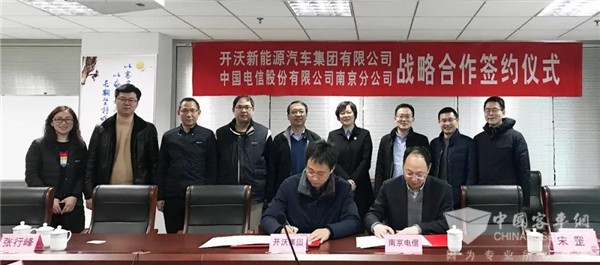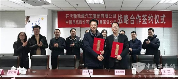 2019年3月1日,开沃新能源汽车集团有限公司与中国电信股份有限公司南京分公司在开沃中央研究院共同签署了战略合作协议。签约现场,双方领导就合作方向、未来规划、技术难点等问题展开了热烈的交谈,并表达了对此次双方达成战略合作的愿景和期待。