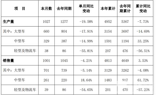 三、金龙汽车---销3575辆降21.5%,大中轻客车同比全线下滑