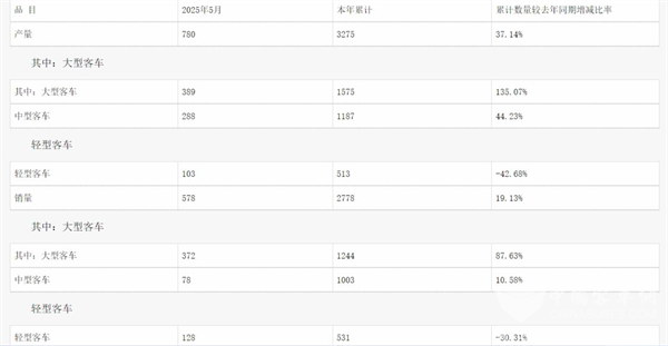 近日,金龙汽车发布了2025年5月份产销数据快报。