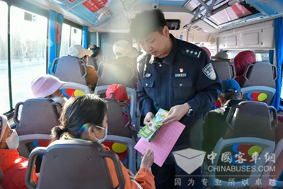 其中,4辆喷涂有“全国交通安全大篷车”彩绘的公交车从通州区东夏园综合交通枢纽启程,一路穿行30余个村庄与地铁站点。车上交警边走边讲,用通俗易懂的语言向乘客讲解酒驾醉驾、无证驾驶等交通违法行为的危害。