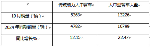现对2025年10月及前10月我国传统动力的大中型客车销量特点进行扼要分析。