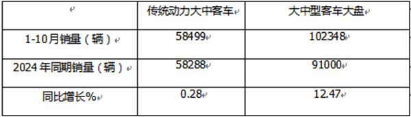 表2,根据中国客车统计信息网数据,2025年10月传统动力大中型客车销量同比与大中型客车大盘比较: