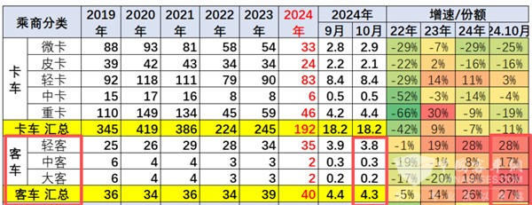 截图1,2024年10月及1-10月国内大中轻客车销量(数据来源:中国汽车流通协会提供的上牌信息)