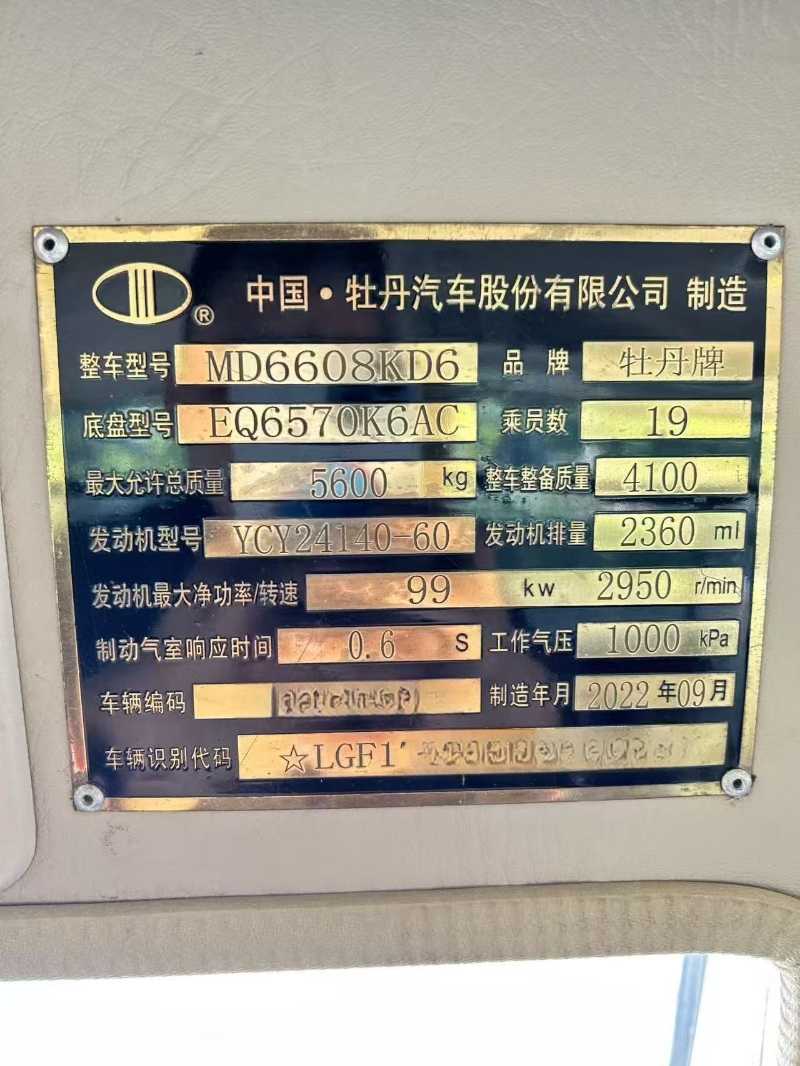 客车品牌 牡丹客车 上牌时间 2022-10-19