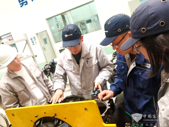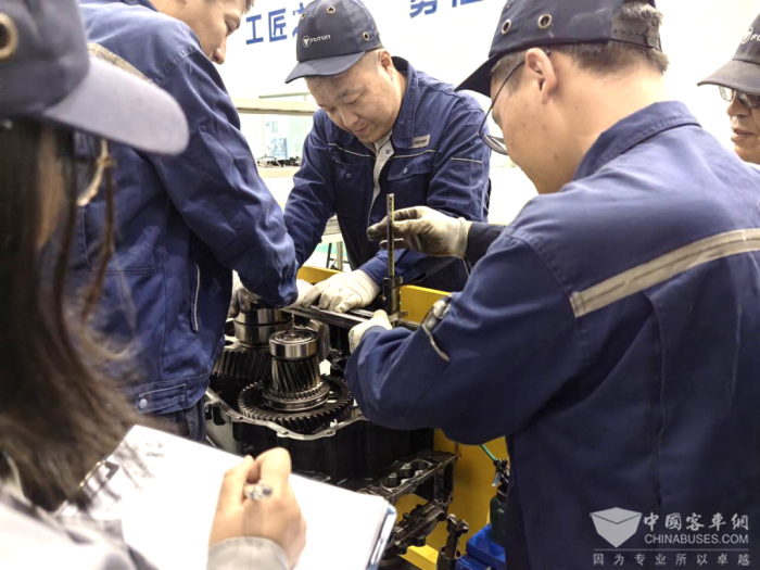 面对棘手的问题,团队一步步摸索,工艺人员连夜赶工,精心编制详尽样件图册、赶制装配工装,技能人员主动放弃休息,围着样件反复琢磨,常常一蹲就是大半天。部分零件需要现场修整,工匠们手持工具细磨慢调,确保每个部件都符合标准;遇到桥壳与变速箱干涉、合盖后齿轮不转的“卡脖子”问题,团队成员围着工位展开“头脑风暴”,拆了装、装了拆。