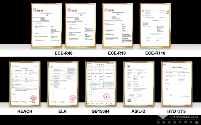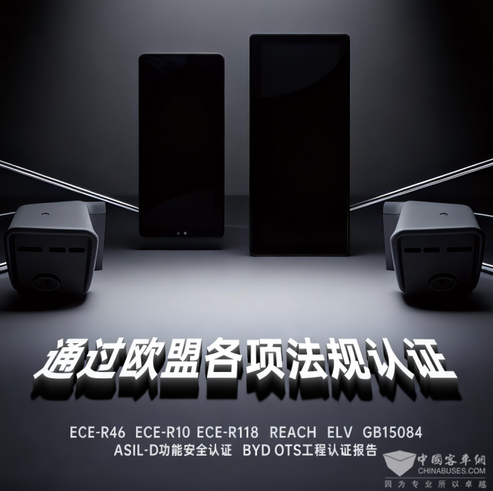 此外,该款产品面向全球商用车市场,在合规性方面同样表现亮眼:不仅全面符合欧盟法规要求,核心性能指标远超行业标准,并获得汽车功能安全最高等级ASIL-D认证,还通过了比亚迪OTS工程认可——这意味着它不仅合规,更能满足头部主机厂的严苛量产要求。
