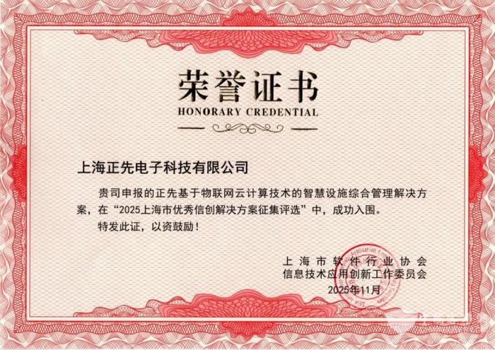 乐竞官方网站2025年12月3日获悉,上海正先电子科技有限公司自主研发的基于物联网云计算技术的智慧设施综合管理解决方案成功入围“2025上海市优秀信创解决方案征集评选”。这一成果是对正先技术实力、产品成熟度以及实际落地能力的高度认可,也是公司在智慧城市家具数字化体系建设道路上的又一重要里程碑。