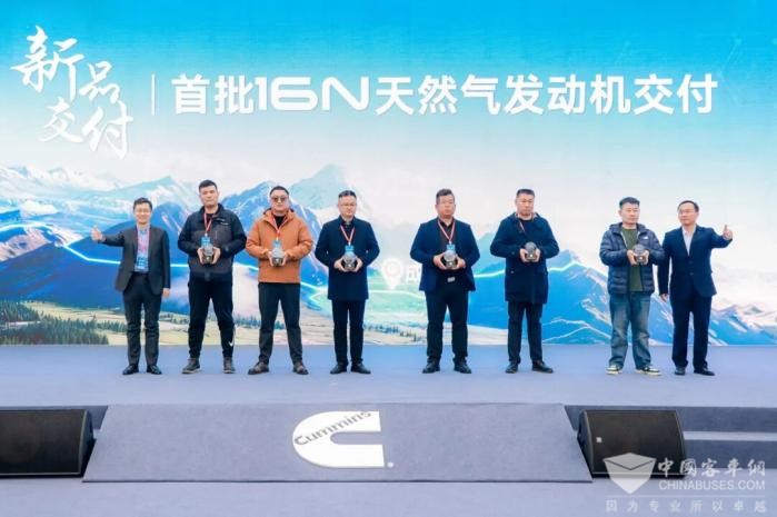活动现场还迎来了首批16N天然气发动机种子机用户交付,东风康明斯发动机有限公司常务副总经理曹永军,北京福田康明斯发动机有限公司副总经理李自强向6位先锋用户进行了产品交付,携手开启一段共赴山海的高效绿色物流旅程,以优异的产品表现及智能主动服务,全方位助力客户成功。