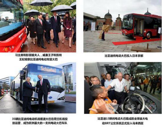 比亚迪新能源事业可谓是全球开花。值得一提的是,2015年10月,在习主席访英期间,比亚迪制造的全球首辆纯电动双层大巴在英国伦敦兰开斯特宫亮相,主席亲自登上比亚迪纯电动大巴,并见证比亚迪与英国最大的客车制造商ADL签署协议,拿下6.6亿英镑大单。